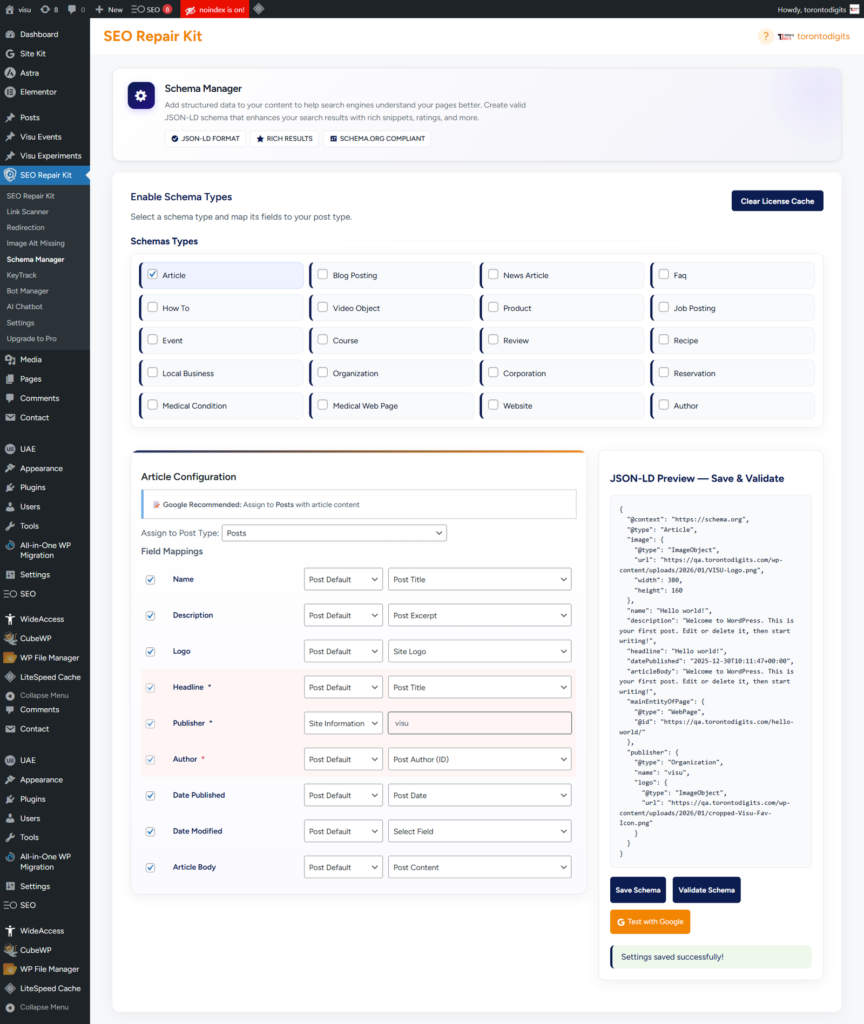 SEO Repair Kit plugin installed and activated