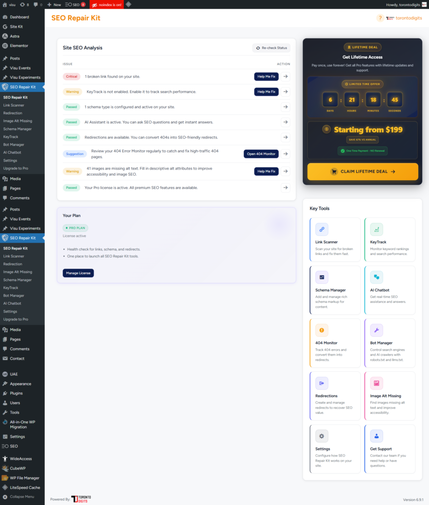 SEO Repair Kit plugin installed and activated.